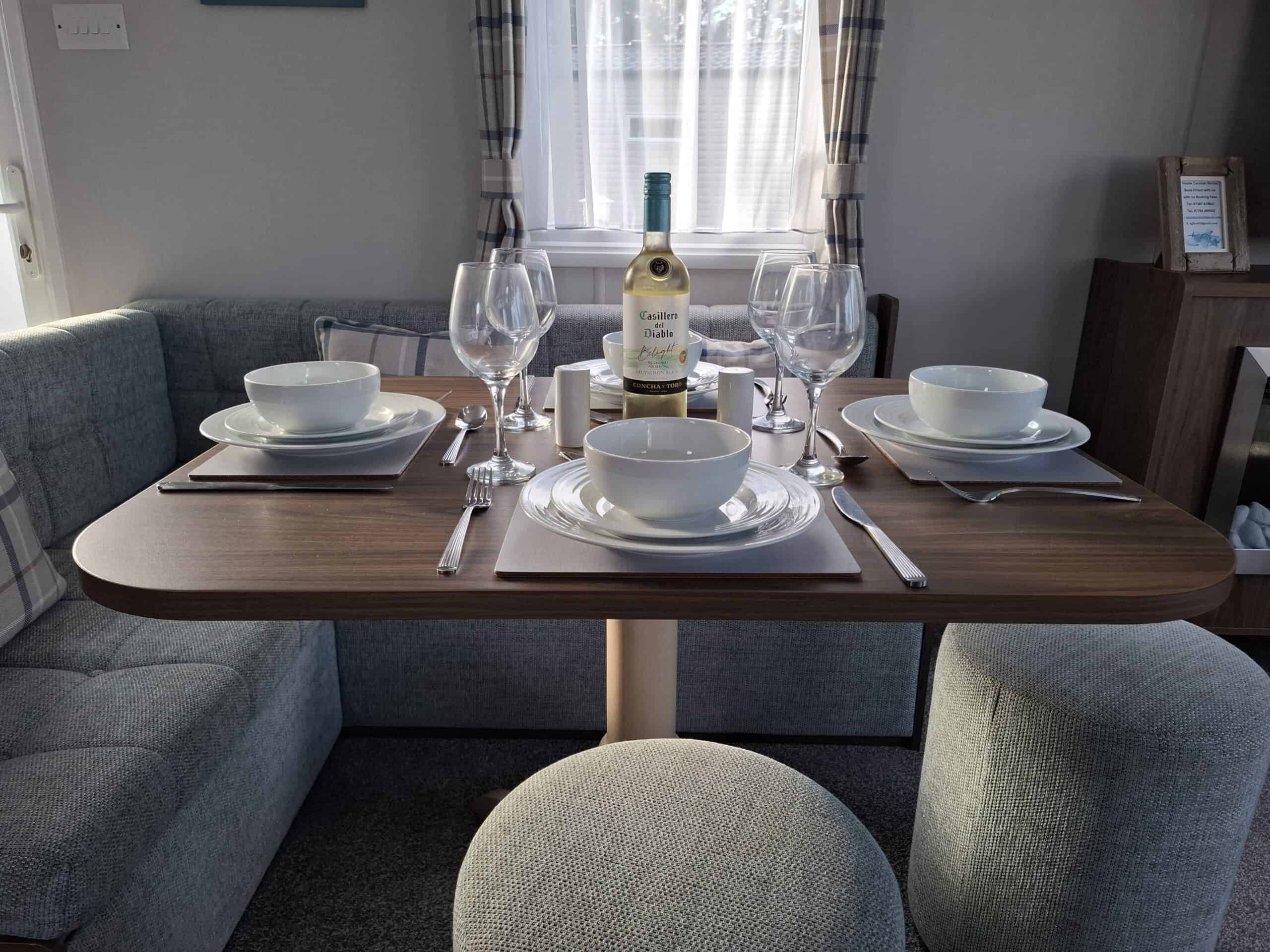 The caravan has double glazing, central heating, gas and electricity, private Wi-Fi, bed linen, towels (PLEASE DO NOT REMOVE TOWELS FROM CARAVAN), Tea, Coffee, Hand Soap, washing up liquid, are all included in the hire price.