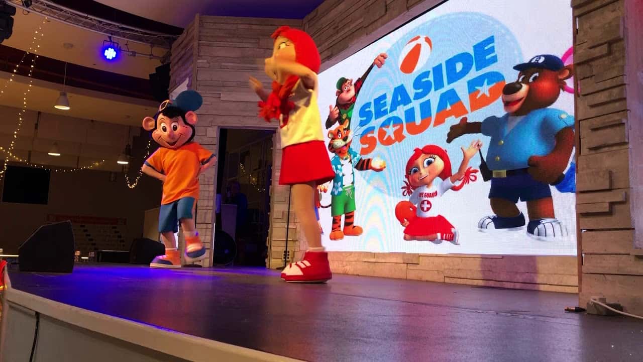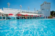 Indoor pool with splash zone, grotto, heated outdoor pool, crazy golf, tennis courts, climbing wall, trampolines, slot machines bars and restaurants.