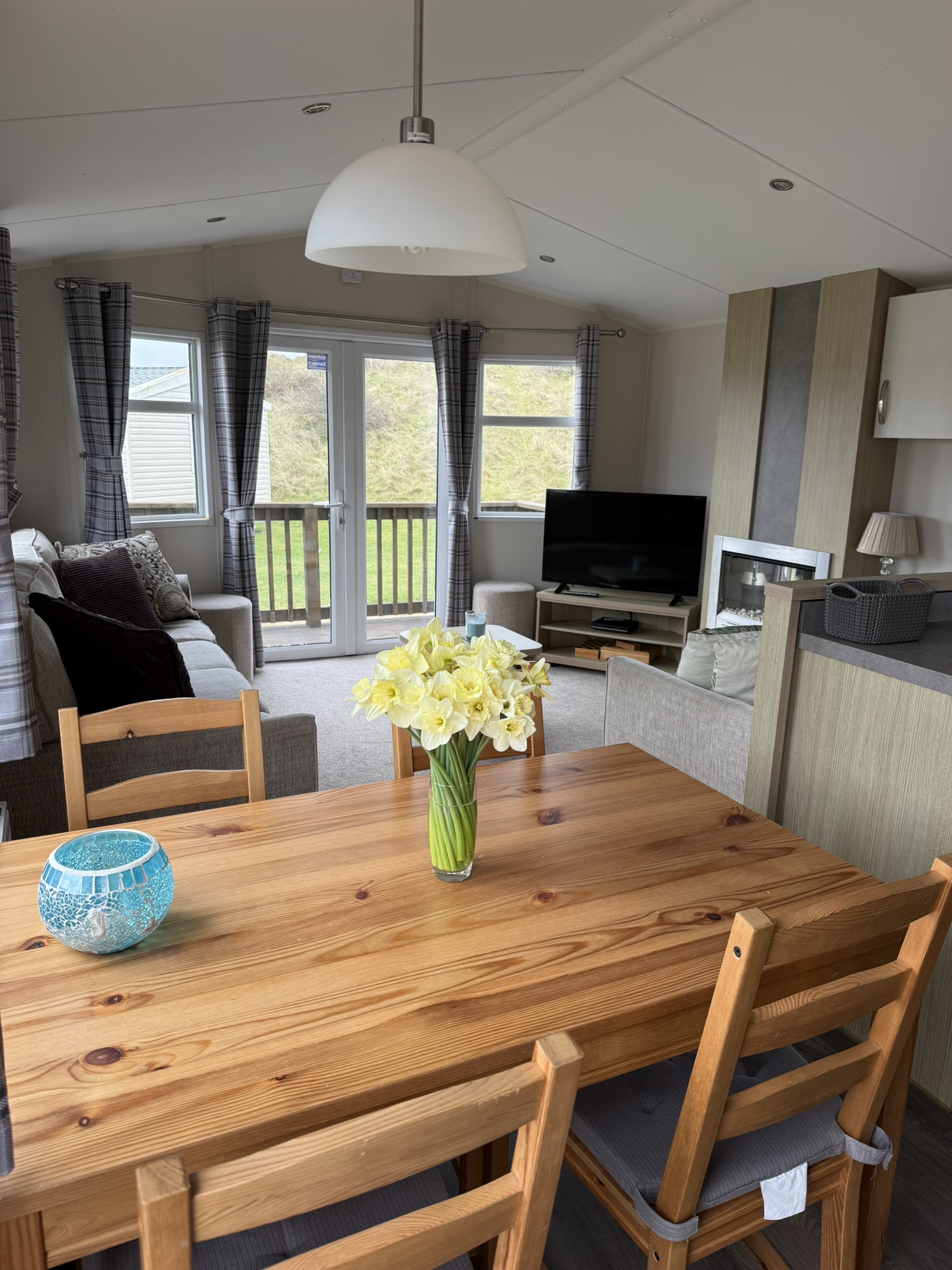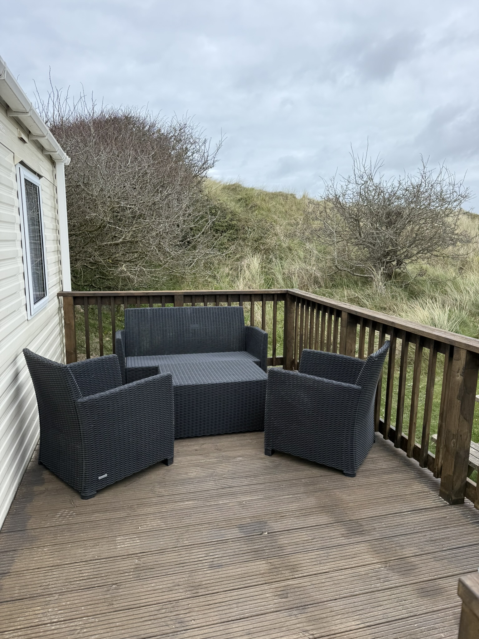Your holiday home is tucked away in the peaceful Piran Point cul‑de‑sac on the outskirts of Perran Sands. You’re just a 10‑minute stroll from the main Haven complex and only 5 minutes from the beach, accessed through the beautiful sand dunes directly behind the caravan. Surrounded by these dunes, the setting is perfect for a calm and relaxing break. At the centre of the cul‑de‑sac is a small grassed island with swings for both little ones and grown‑up kids at heart. It’s an ideal spot for them to play while you unwind and enjoy the tranquillity, all within easy view. Just outside the cul‑de‑sac to your left, you’ll find a gateway to both adventure and history. The original St Piran Church is only a short walk away — a lovely piece of local heritage to explore during your stay. The caravan features full wraparound decking with ramp access, complete with comfortable seating on the patio area. A picnic table sits on the grass beside the caravan, perfect for those warm summer evenings and exclusively for your use. There’s still plenty of space remaining for parking. Please note that prices do not include bed linen, though quilts and pillows are provided. Play passes can be purchased directly from Haven ahead of your stay. While bookings are listed from Saturday to Saturday, long weekends or alternative dates can be considered during off‑peak periods.