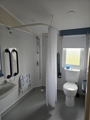 Accessible Holiday Caravan – Designed for Comfort & Ease Enjoy a relaxing break in our fully adapted, wheelchair-friendly holiday caravan, thoughtfully designed to meet a wide range of accessibility needs. The caravan offers easy ramped access, wide sliding doors, and a spacious interior, allowing comfortable movement throughout. Inside, you’ll find lowered worktops, accessible light switches, and practical fittings to support independence and day-to-day ease. For added comfort in all seasons, the caravan is fully double-glazed and benefits from central heating, creating a warm and welcoming environment. A ceiling track hoist system is installed to assist with transfers, and the modern wet room provides level-access showering with ample space for assisted use. This is a true home-from-home, offering a safe, practical, and relaxing environment for families looking to enjoy a break without compromise.