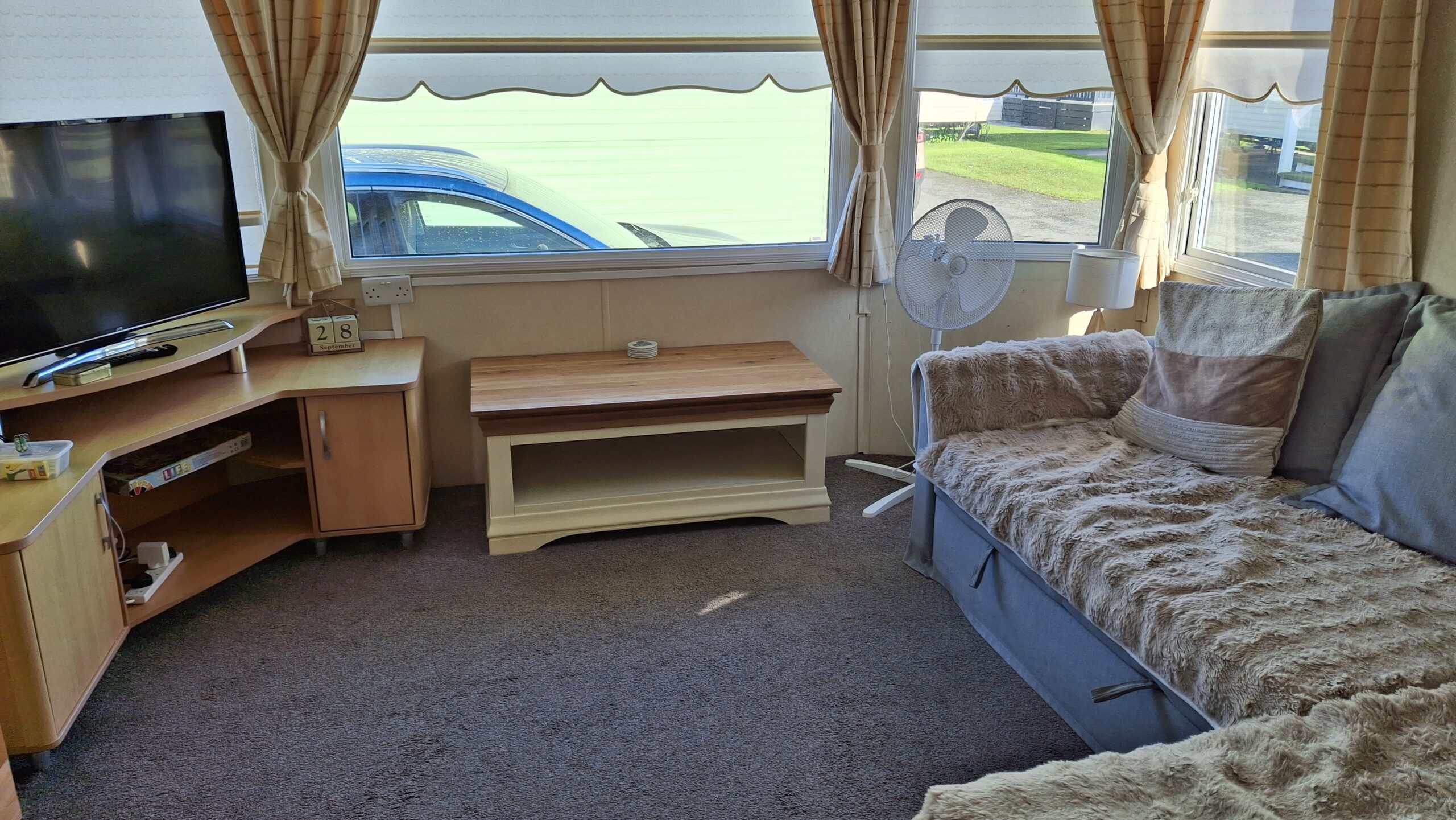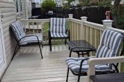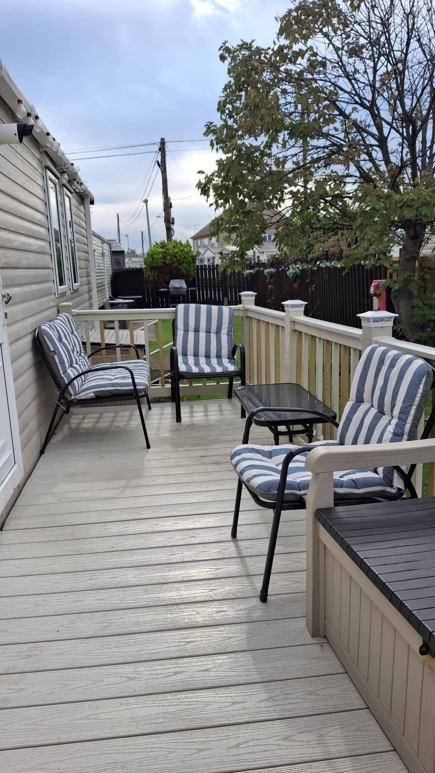 Onsite facilities include free use of clubhouse serving drinks and hot food and weekly entertainment, there is also A kiddies play area and a swimming pool The beach is a short stroll over the bridge were you’ll also find a cycle path and walk way that stretches for miles. There are lots of local pubs, shops takeaways and a fairground all within walking distance. Our caravan is modern clean and fully equipped, it’s smoke and pet free. It has 2 bedrooms, the master has on suite and the second has 2 single beds. The lounge has a sofa bed and ample seating, dining table and smart TV. The kitchen is well equipped for meal times and has everything you will need Gas and electric are in on the price. Our Caravan has its own exclusive modern WiFi which is free to use when booking. There is also Onsite free Wi-Fi We have recently had a veranda with solar lighting fitted, so on warm nights you can enjoy relaxing outside. Our plot is at the end of the site and has a large garden area which is a suntrap. All bookings require a £75 deposit/Bond NON REFUNDABLE if you cancel. This will be refunded once caravan has been inspected after your stay. Balance must be paid 4 weeks before date of arrival. Prices vary across the season. Just message with dates you require and we’ll get back to you. No single sex bookings i.e. stag or hen parties as site is family friendly.