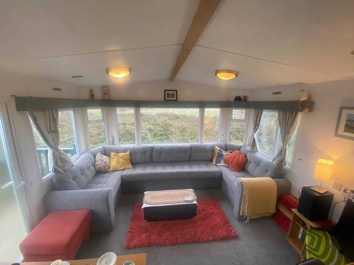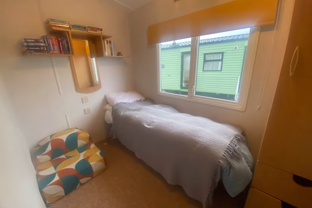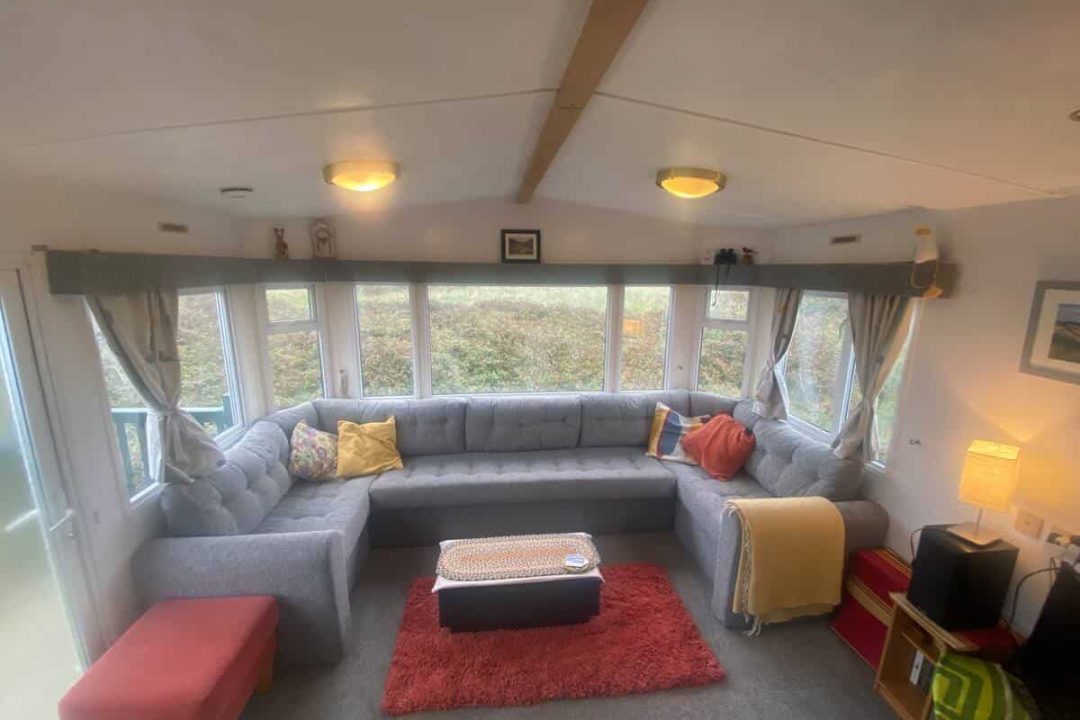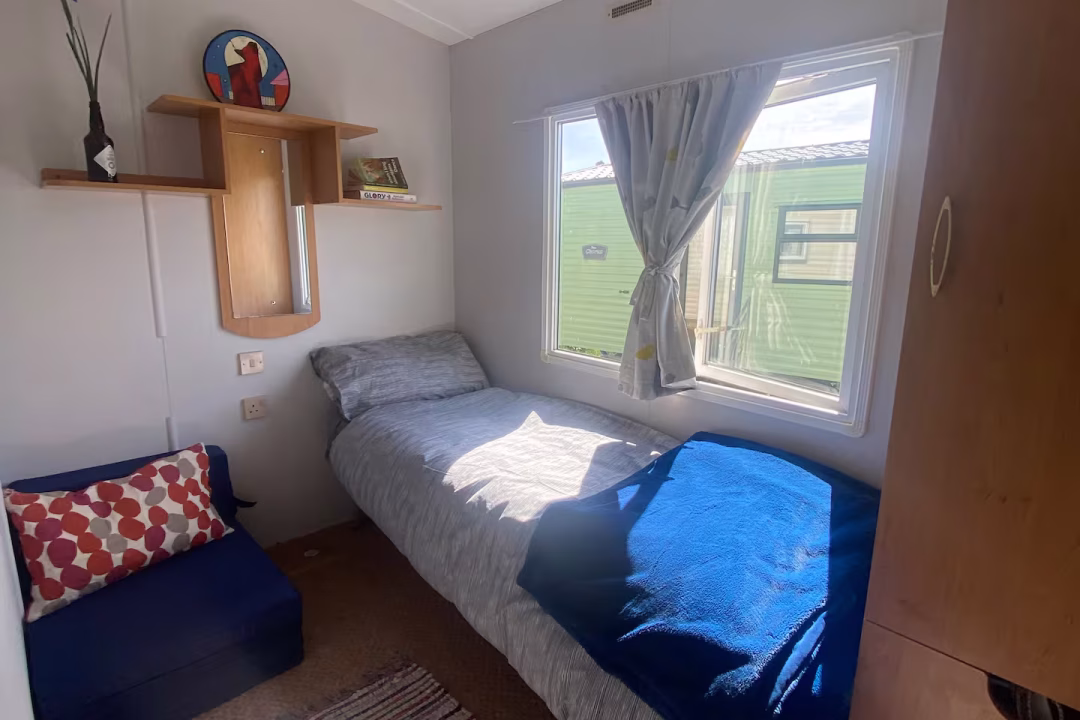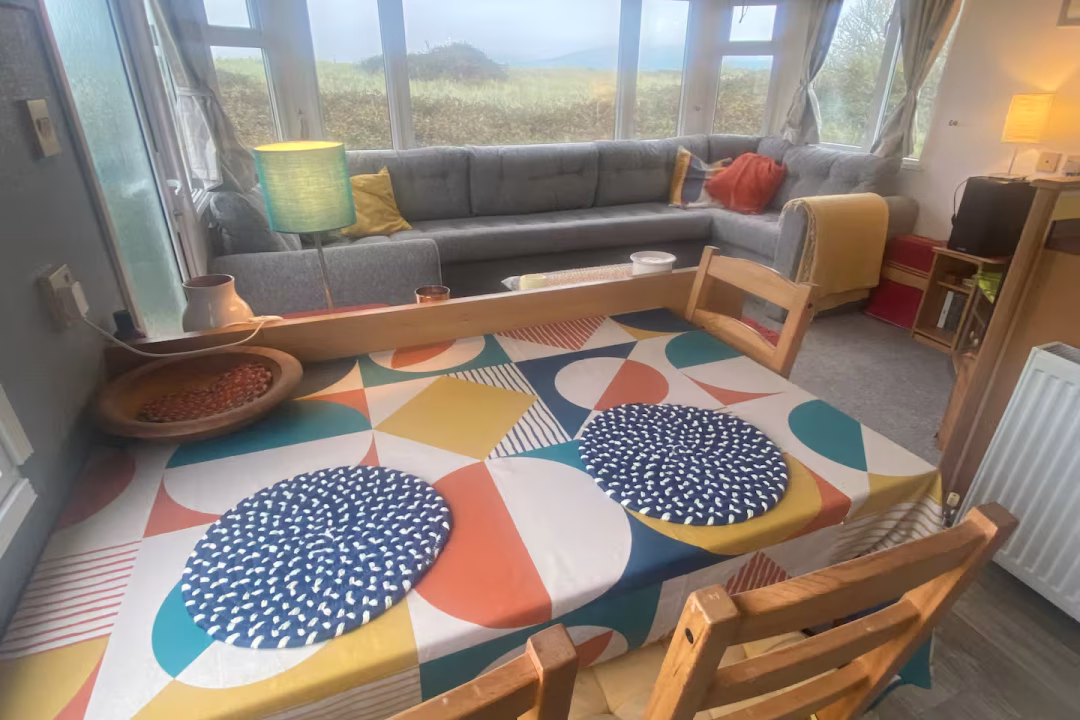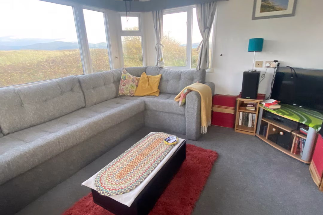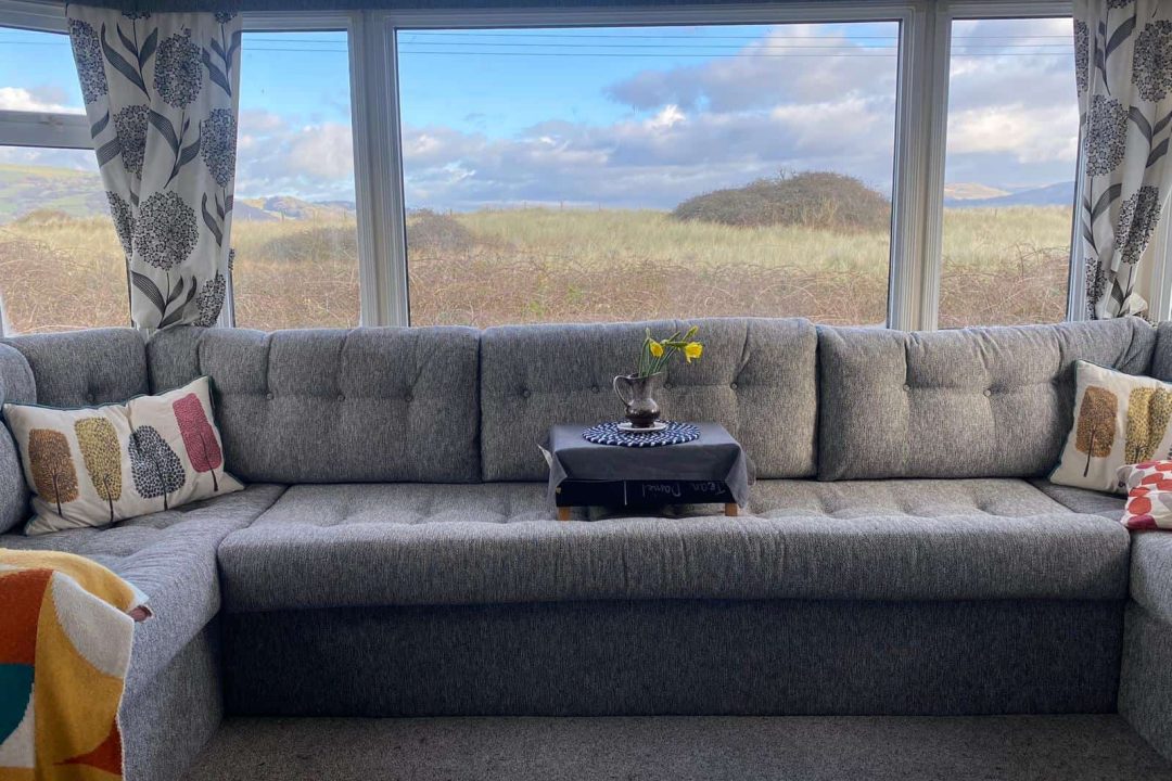 Our bright, dog-friendly caravan—which backs right onto the Dyfi Nature Reserve—has two bedrooms. There’s a double bed in the main bedroom. The second bedroom has a single bed and enough space for blow-up mattress. The couch in the living space can can also be unfolded into a bed.