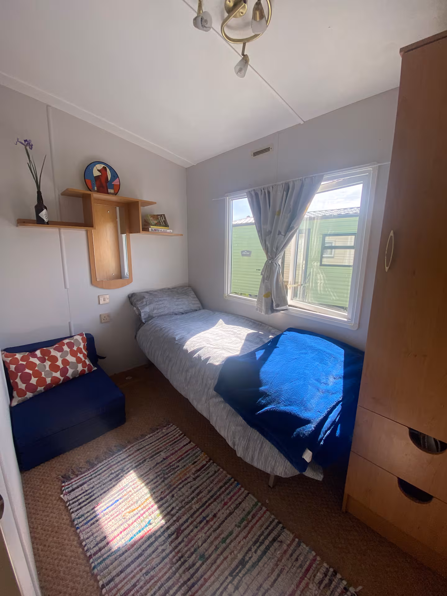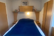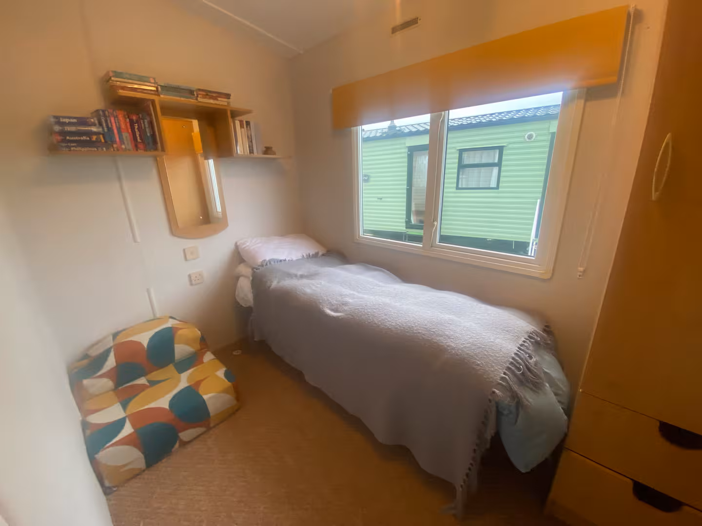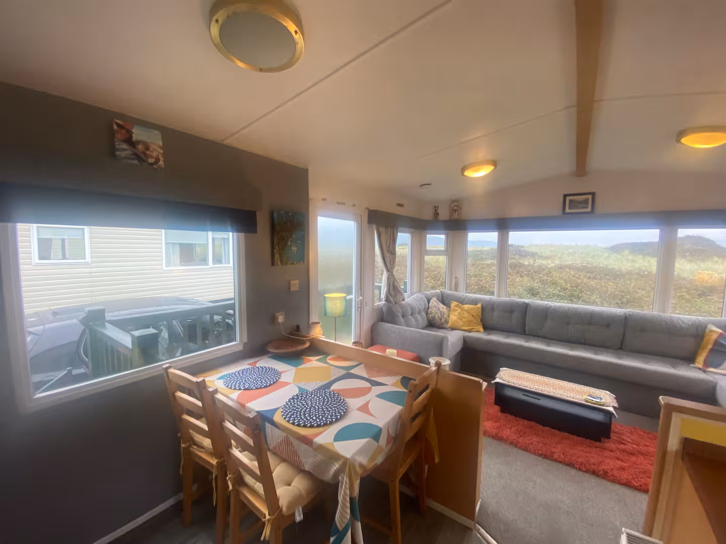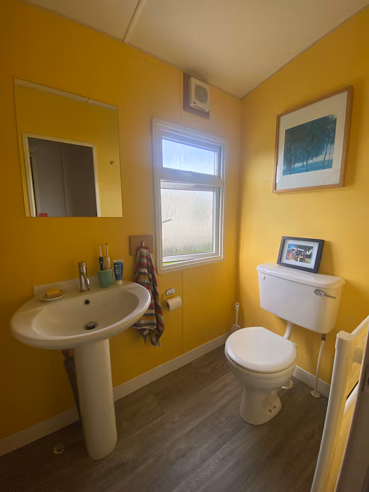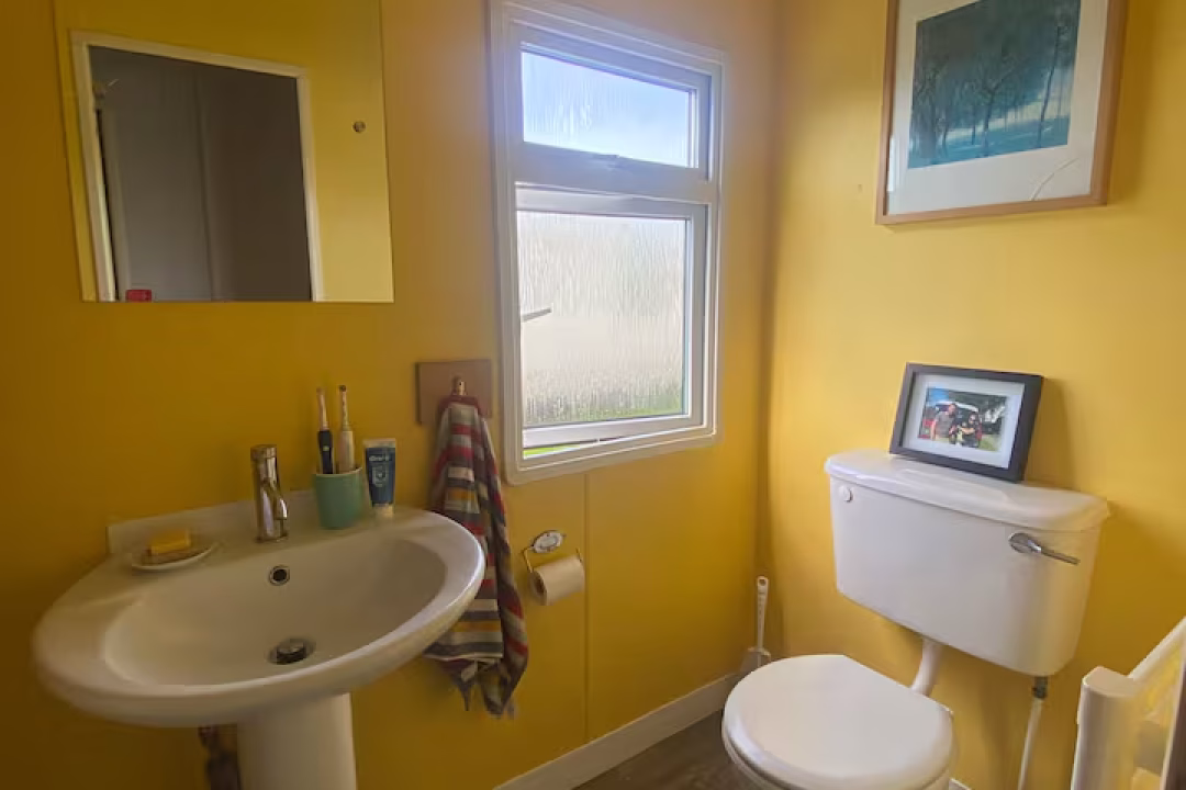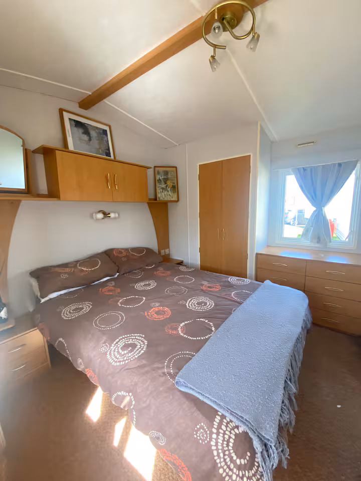 Our bright, dog-friendly caravan—which backs right onto the Dyfi Nature Reserve—has two bedrooms. There’s a double bed in the main bedroom. The second bedroom has a single bed and enough space for blow-up mattress. The couch in the living space can can also be unfolded into a bed.