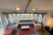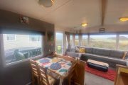 The second caravan door opens up to a small decking—perfect for enjoying views of the Dyfi valley and a drink outside. The gas central heating, with radiators in every room, warms the space quickly during the colder months.