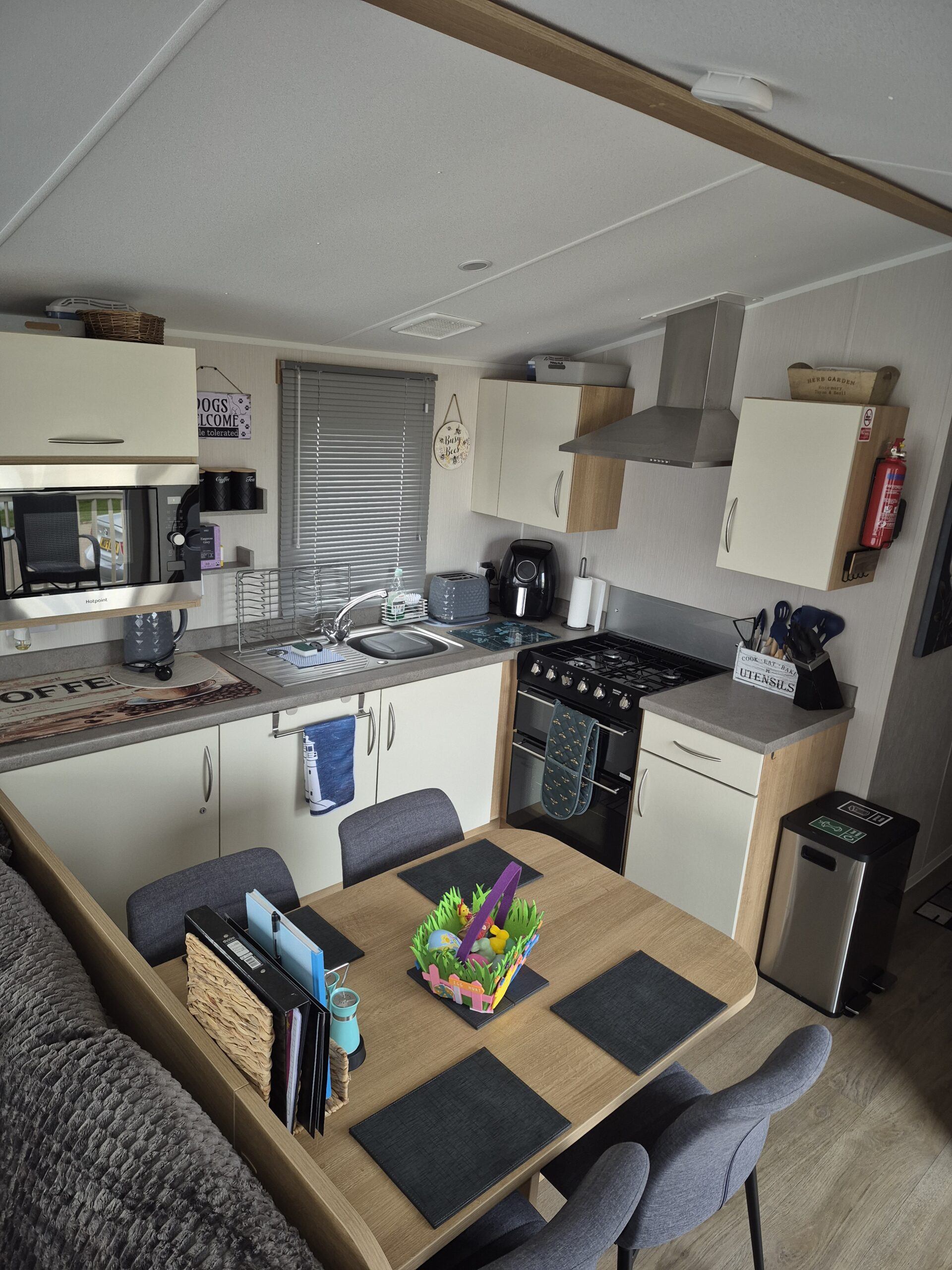 £50 deposit is required to save dates for you. Balance plus £75 refundable breakages and cleaning bond is due 6 weeks before holiday start date. IF balance isn’t received by date that will be stated then all monies paid will be non refundable. Dogs welcome at no extra charge up to max of 2 dogs. Gas electric wifi included. Passes not included these can be purchased from reception upon arrival. NO electric car charging from the caravan, meters are ready before and after each use. No dogs on beds. No all male/female parties park rules. No smoking OR camping inside the caravan. No bbq s permitted on the decking areas.