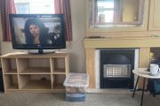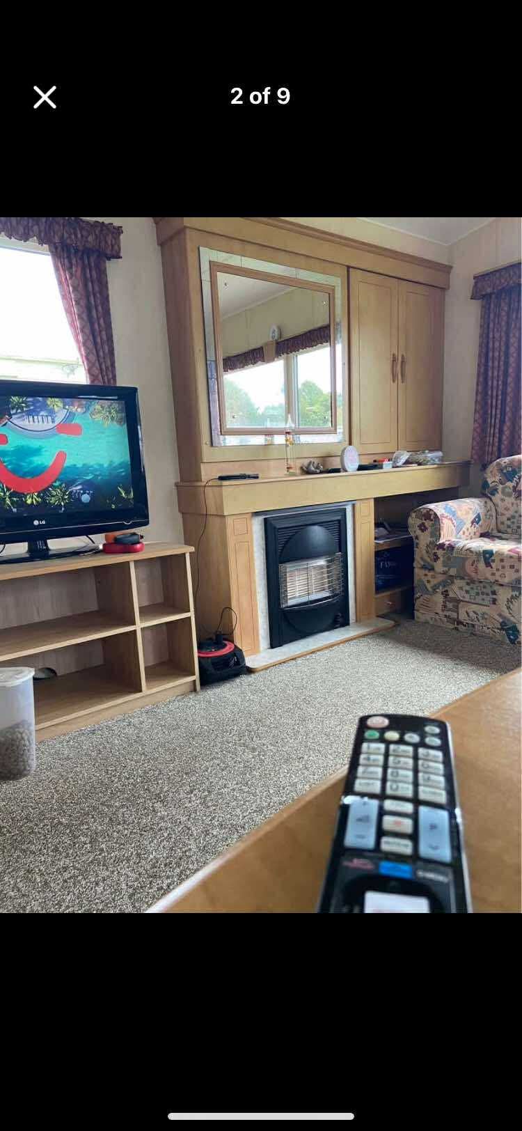 A lovely 6 berth caravan , big lounge area tv . Gas fire , table and chairs. Lots of cupboard space . Kitchen has everything you need. Toilet and shower. One bedroom is en suite. Straight across road is a lovely pub with entertainment and kids allowed in as well as dogs. There is marks and Spencer’s, pet shop , Lidl and b and m all across the road. A beautiful dog walk . Only a 10 min walk to centre of Skegness .