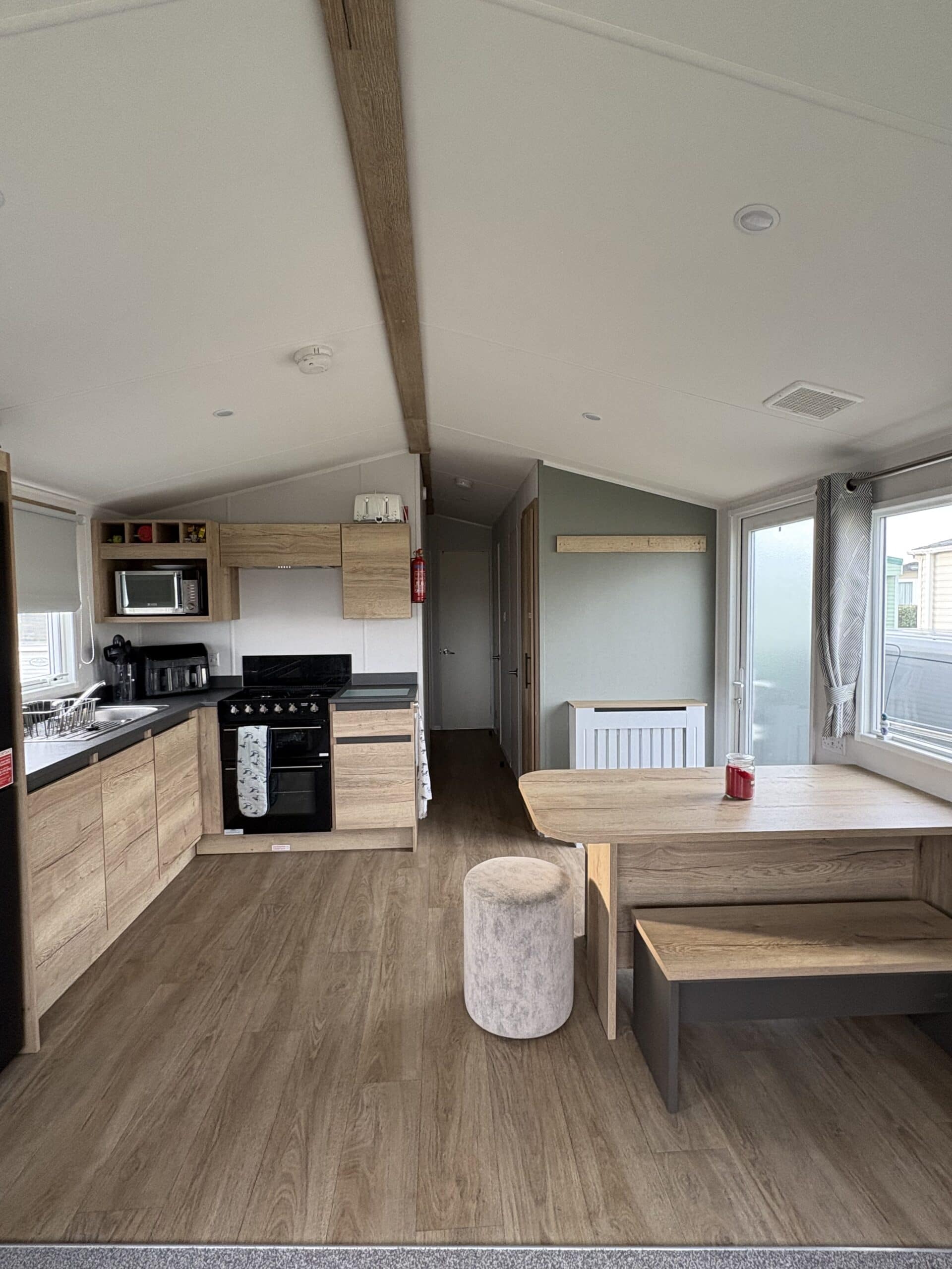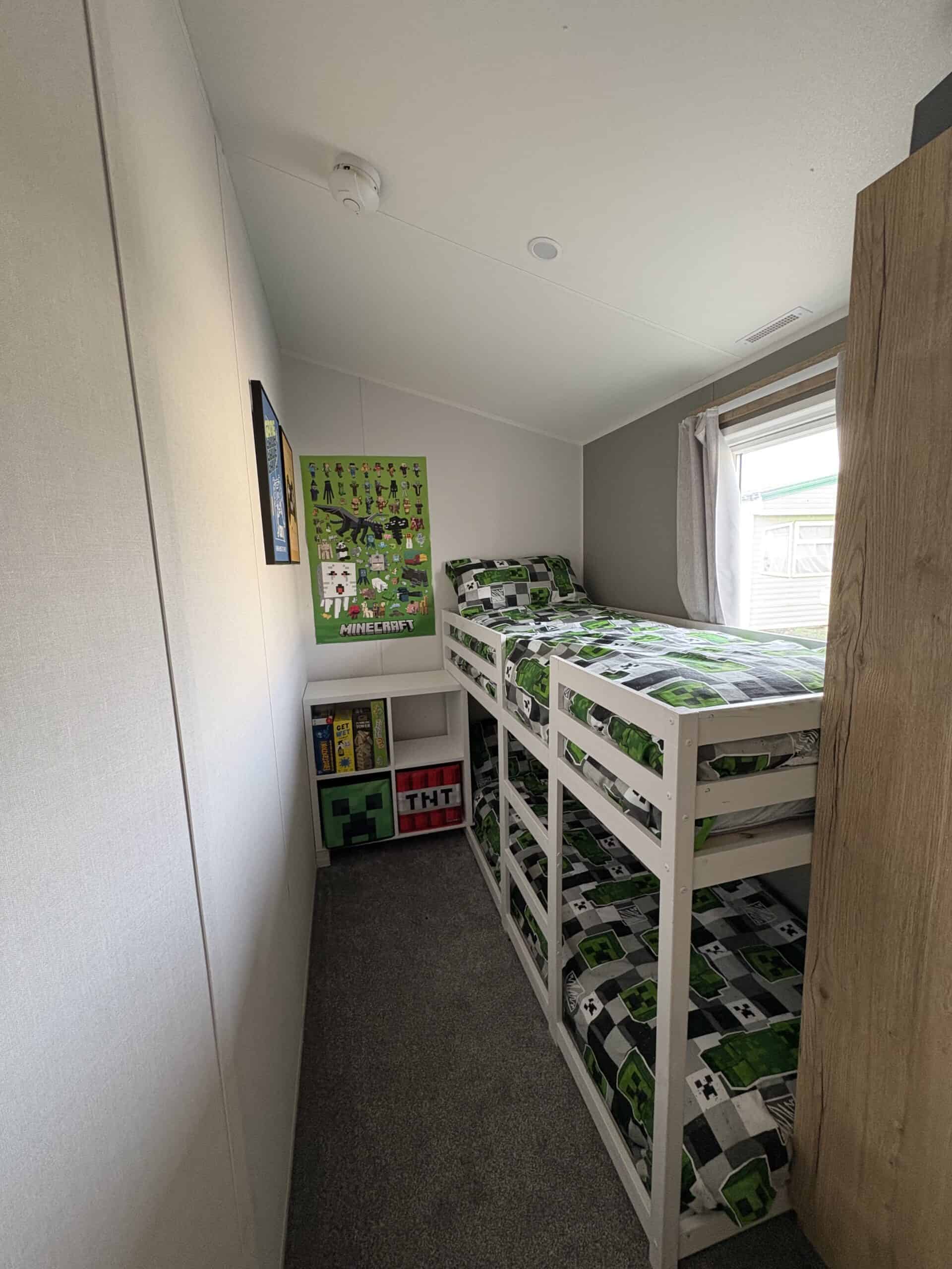 Stunning 3 bedroom family caravan situated in a superb location on trecco bay holiday park. Sleeps 8 with 3 bedrooms and a pull out bed in the lounge. Central heating throughout. 1 minute walk from the beach and 5 minute walk to main activity hub, food and shops. Pleanty of entertainment and activity on site. BOOK NOW FOR 20% OFF YOUR NEXT HOLIDAY.